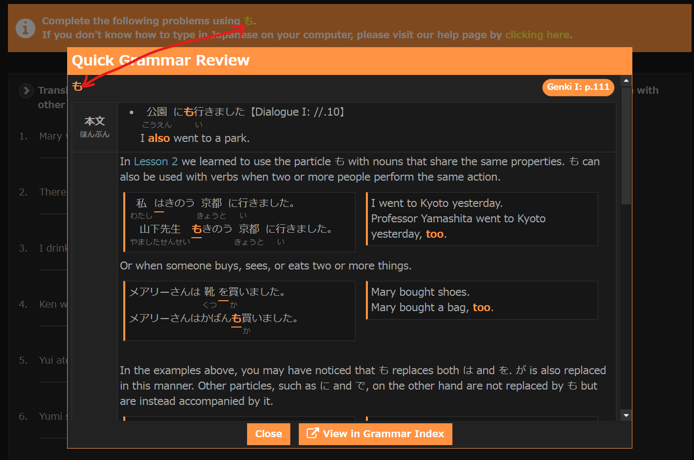 - Memorize the Vocabulary for the current lesson. You can do this with either the Anki decks or the vocabulary exercises under each lesson on this website (ex. Lesson 1). If using the latter method, please see this page for tips on memorizing vocabulary.